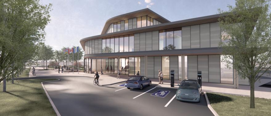 The new municipal facilities will be built on Hovey Road across from Centennial Park with plans to include a recreation centre operated by the Peninsula Recreation Commission (PRC). The three-storey building will house Central Saanich’s police station, fire station 2, municipal hall and the recreation centre. Designed by HCMA, the building’s architecture was well received by the community.