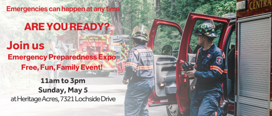 Emergencies can happen at any time, and the District of Central Saanich is inviting the public to its first Emergency Preparedness Expo on Sunday, May 5, at Heritage Acres, to learn what steps you need to take to be ready.