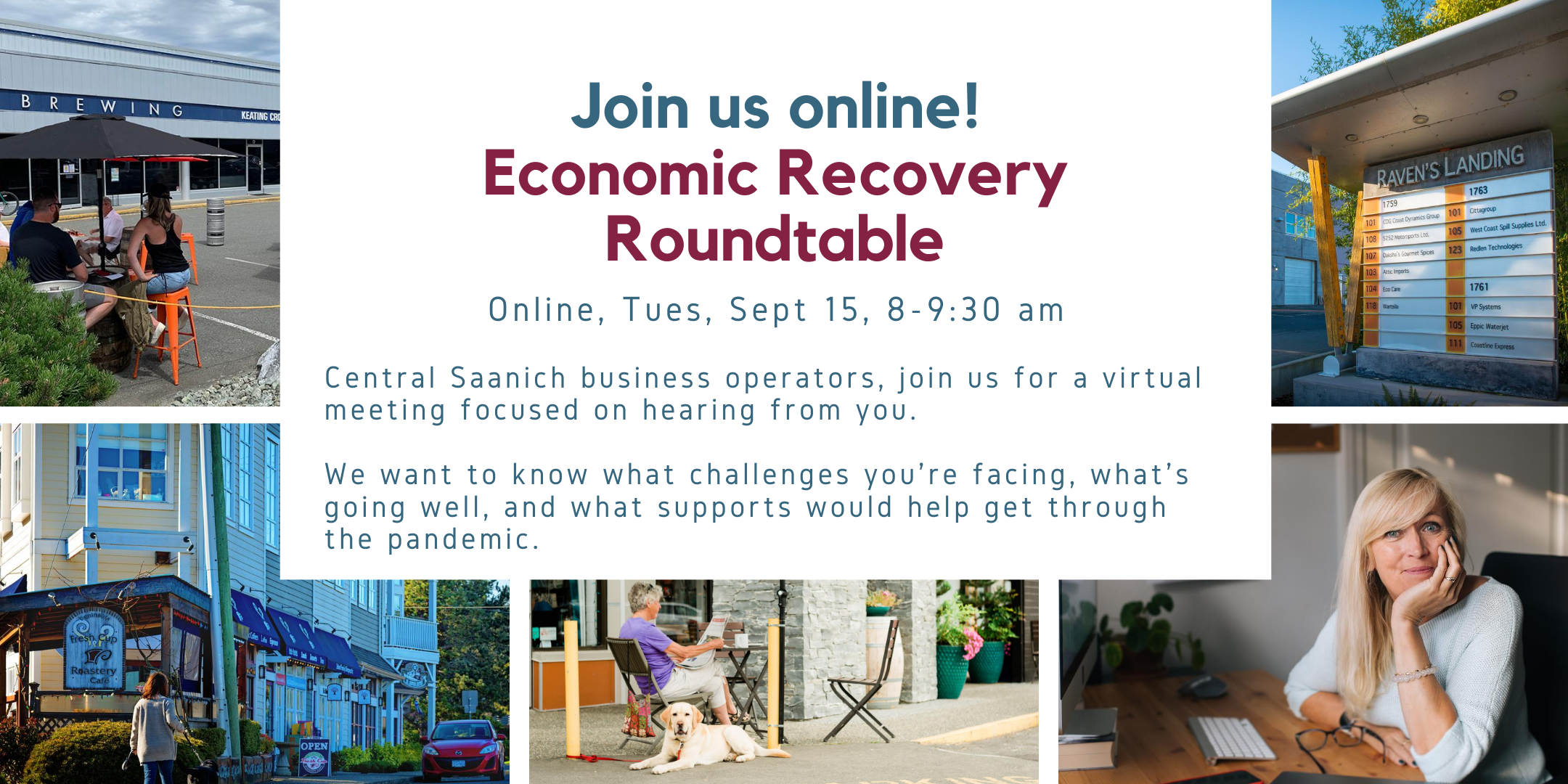 Please join us for a short online meeting to talk about local business recovery. We will be posing some questions to you and looking for your feedback. A report summarizing what we heard will be presented to Central Saanich Council.