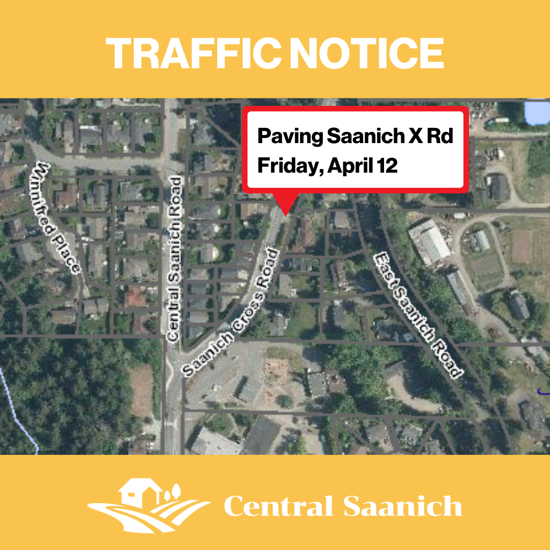 Please be advised that paving on Saanich Cross Road, between Central Saanich Road and East Saanich Road will take place on Friday, April 12.