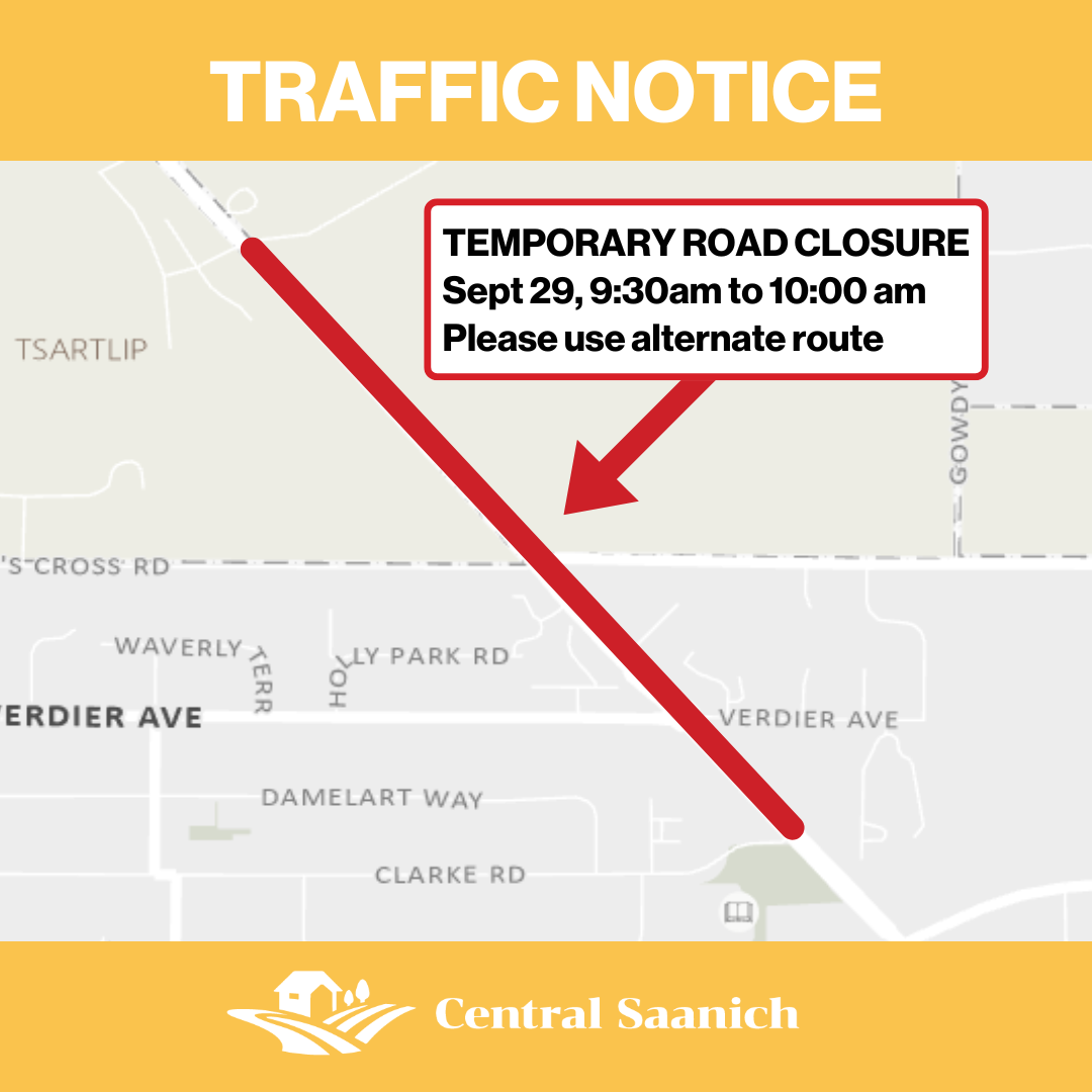 Please be advised that a portion of West Saanich will be temporarily closed: